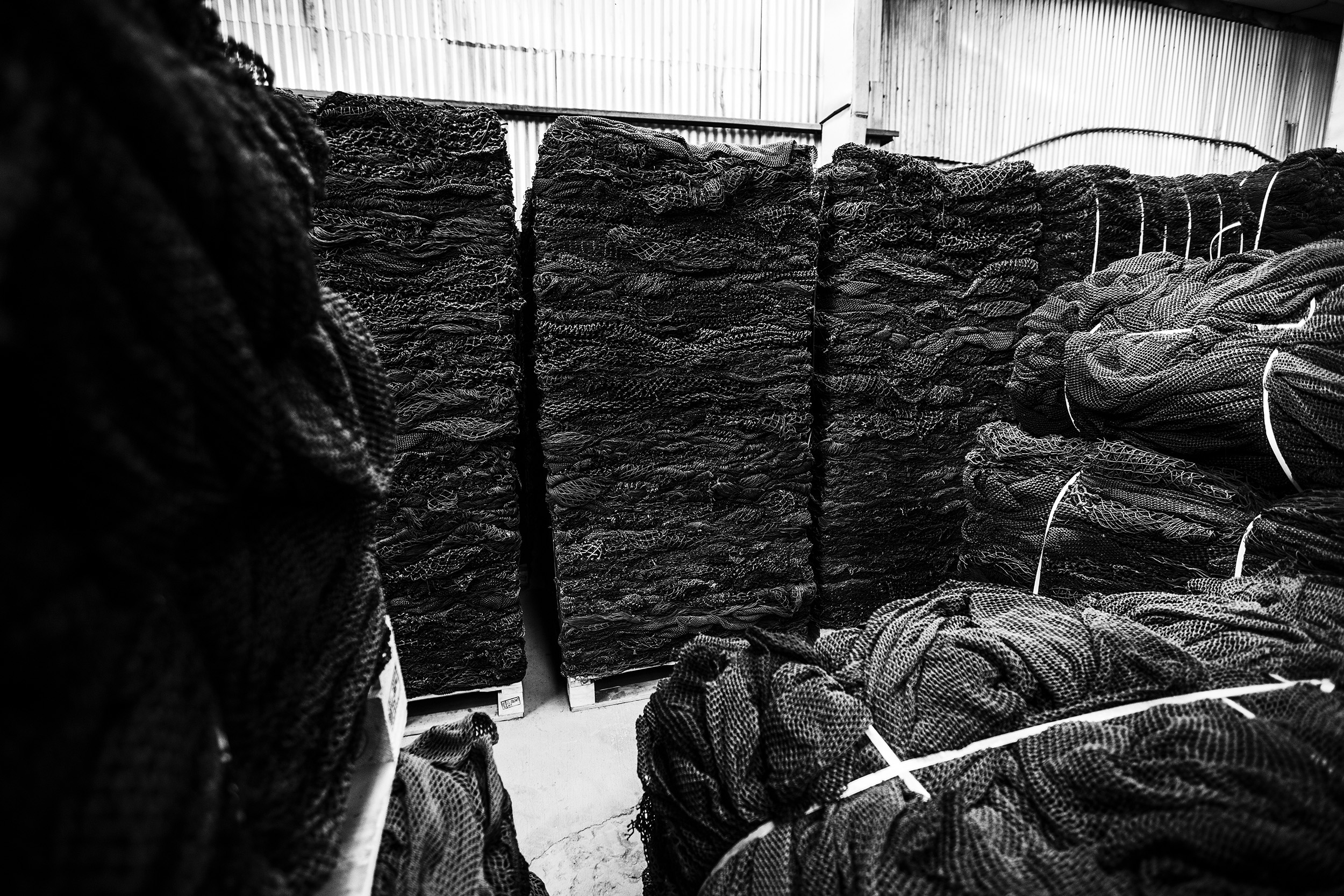 Paso 1: Recolección de redes. Se recolectan redes en toda la costa. Todas las redes que se recolectan se entregan a nuestro almacén de acopio para su procesamiento.